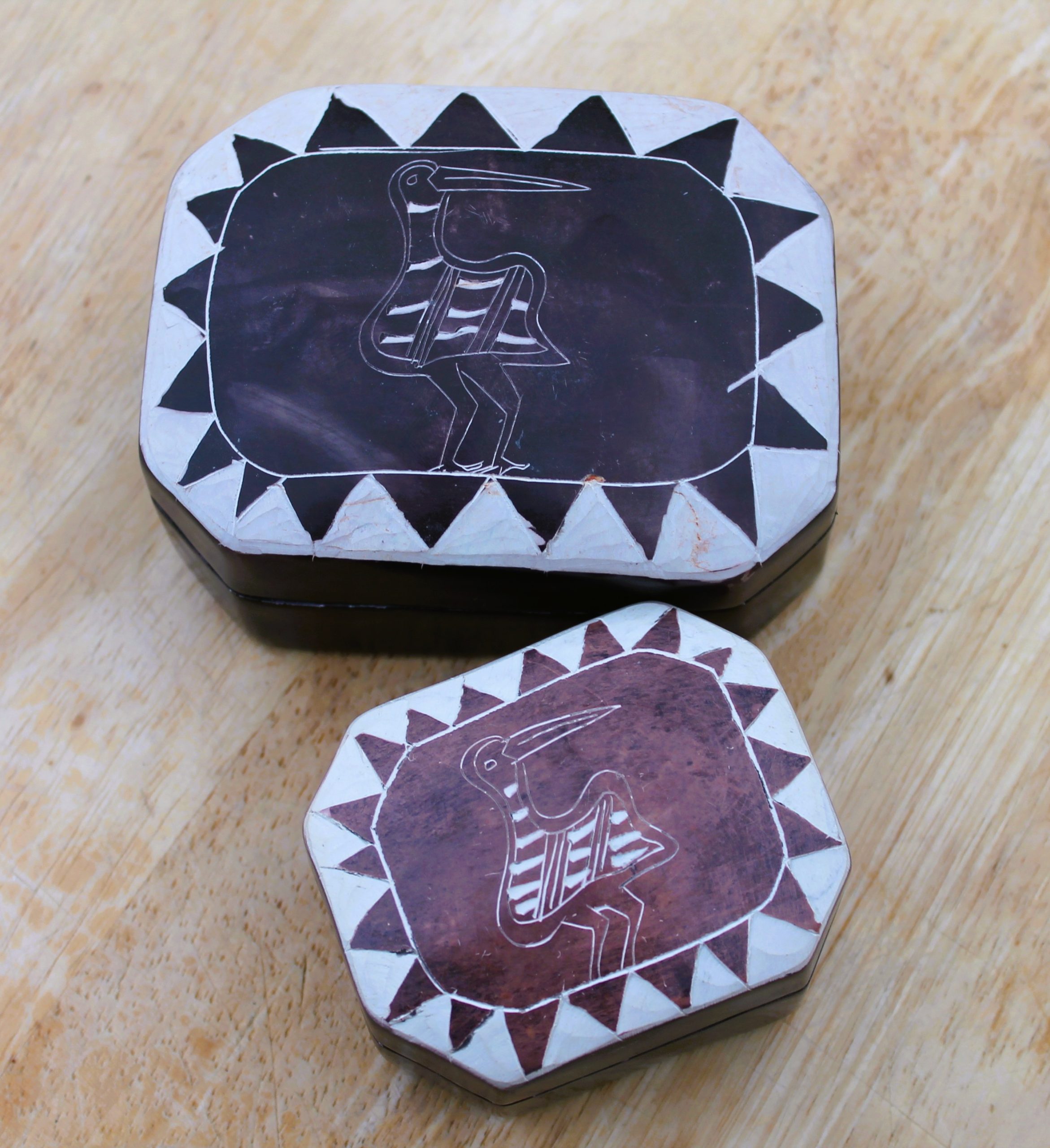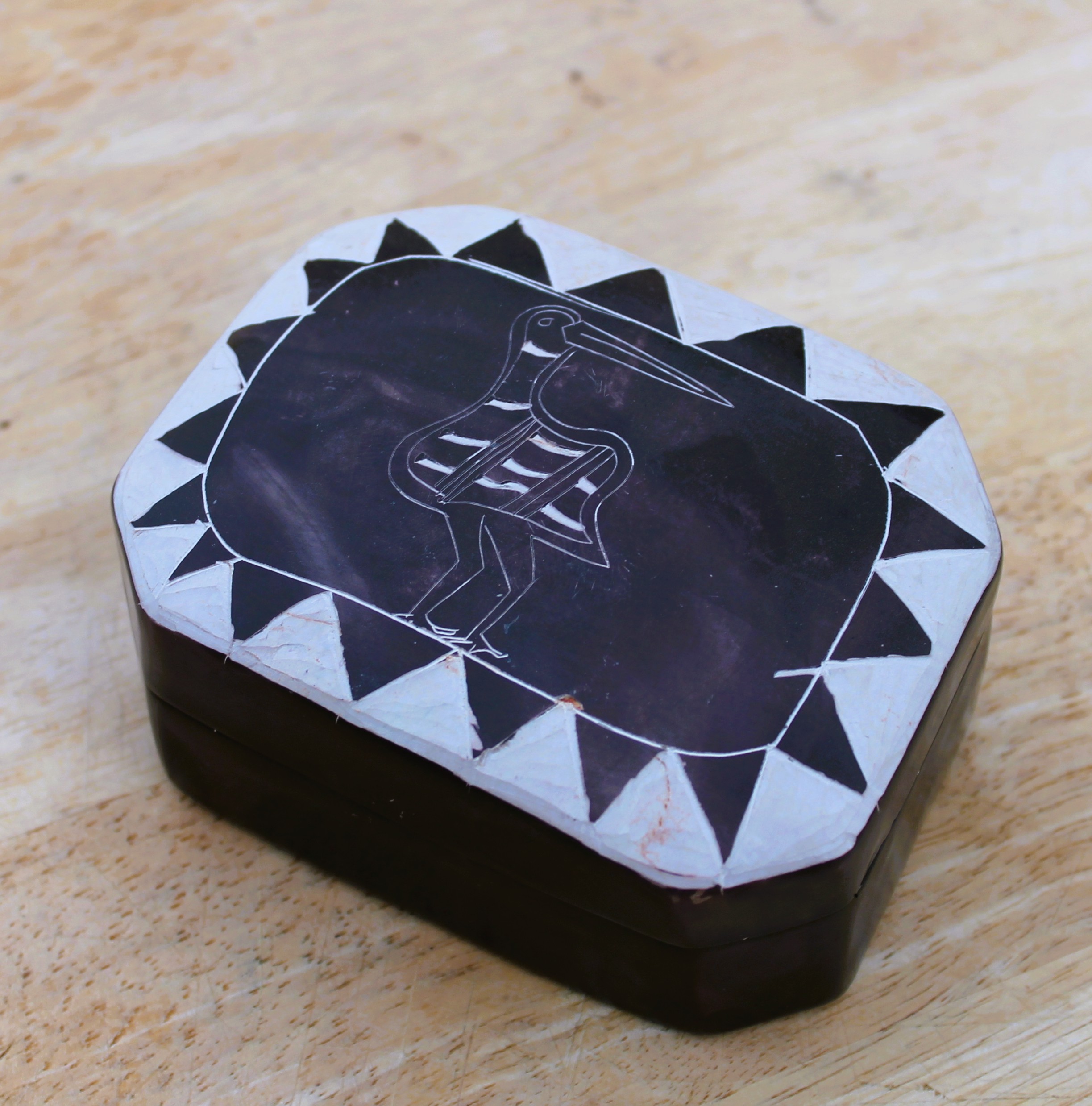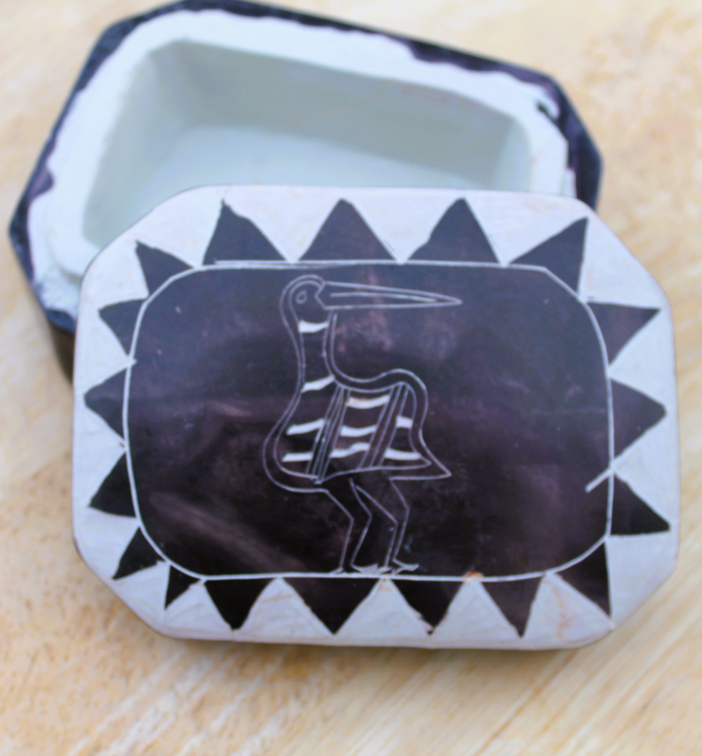 Boîte (à bijoux ou à clefs, vide-poche) en pierre à savon, motif animalier