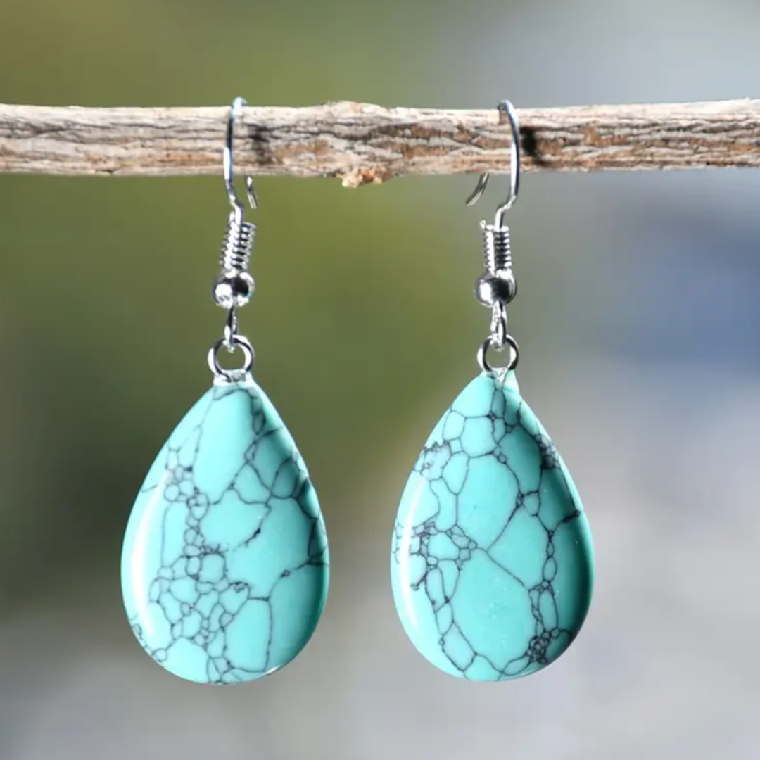 Paire de boucles d’oreilles en forme de larme, en pierre naturelle. Jolis pendants d’oreilles montés sur crochet en alliage. Très élégantes, elles s’adaptent à toutes les tenues, puisqu’elles se déclinent en 9 couleurs.  Elles sont aussi des aides précieuses pour travailler les énergies des chakras, puisqu’elles se déclinent dans leurs couleurs. A offrir ou à s’offrir en toute occasion et en toute saison. Pendants d’oreilles de la couleur de votre humeur ou de l’énergie et du chakra  que vous souhaitez mettre à l’honneur.