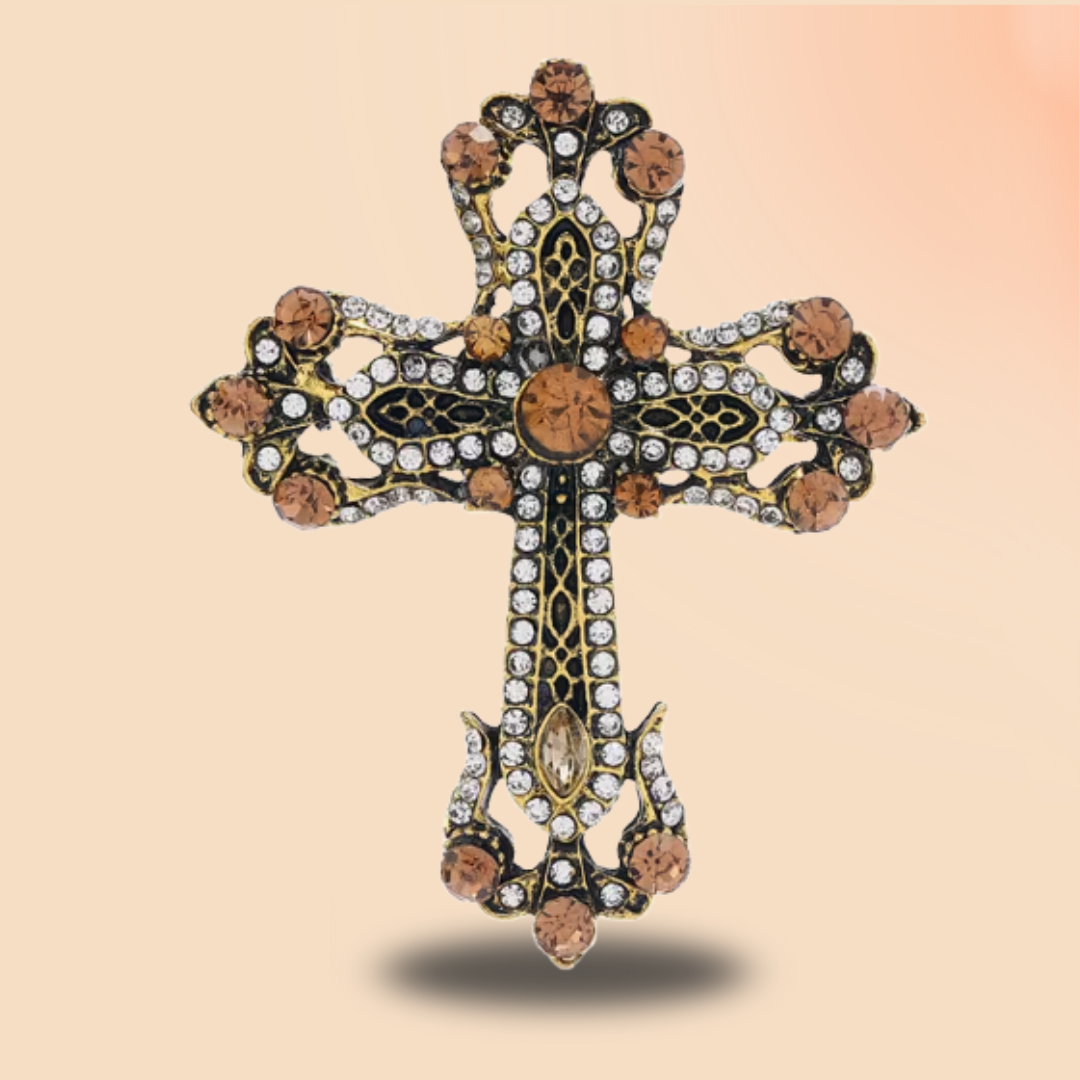 Matériaux : laiton doré, zircons et pierres synthétiques
