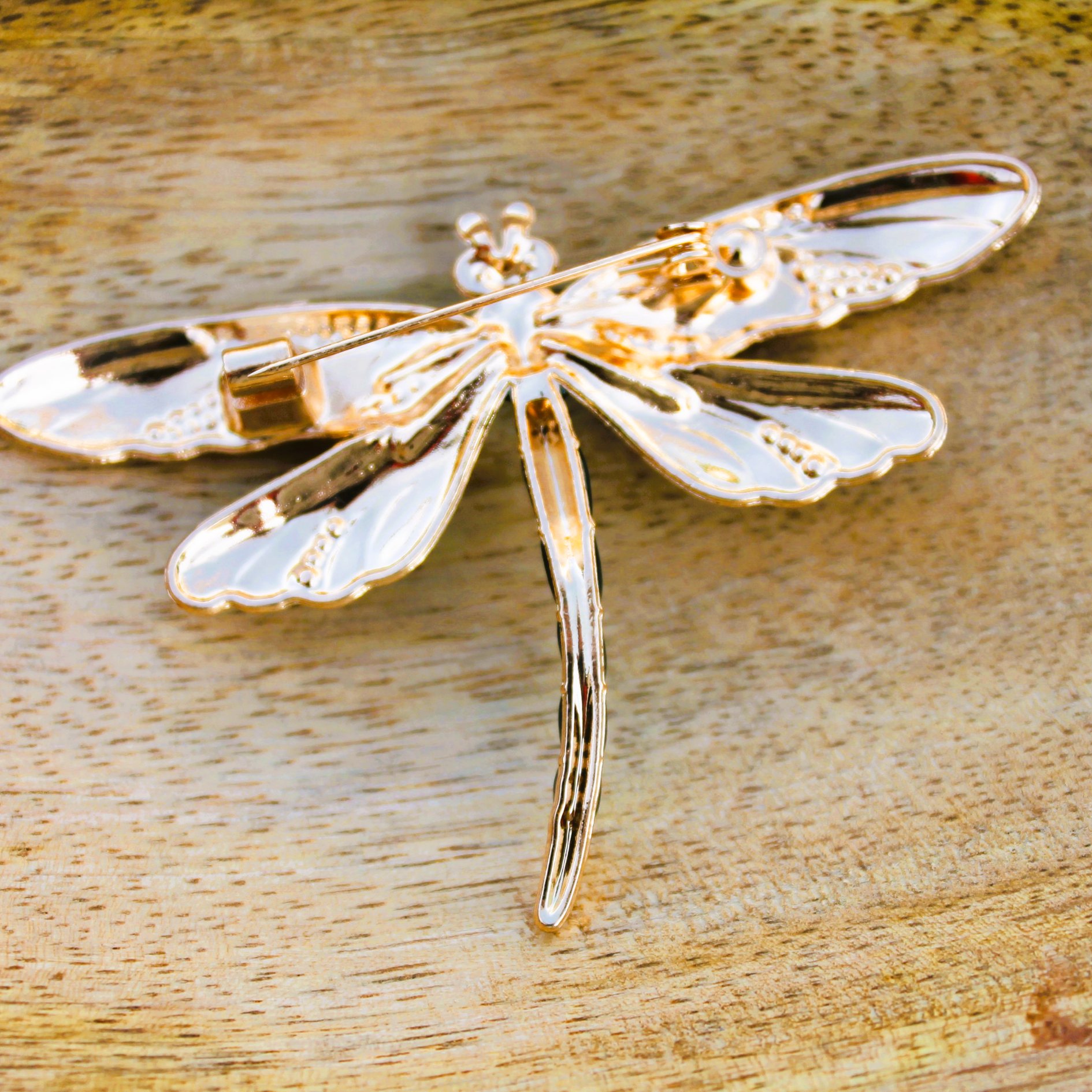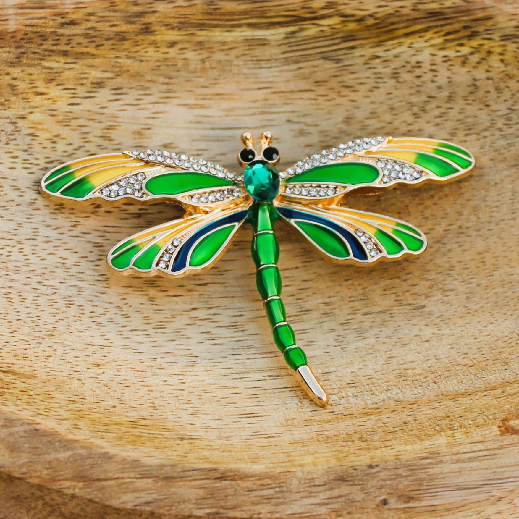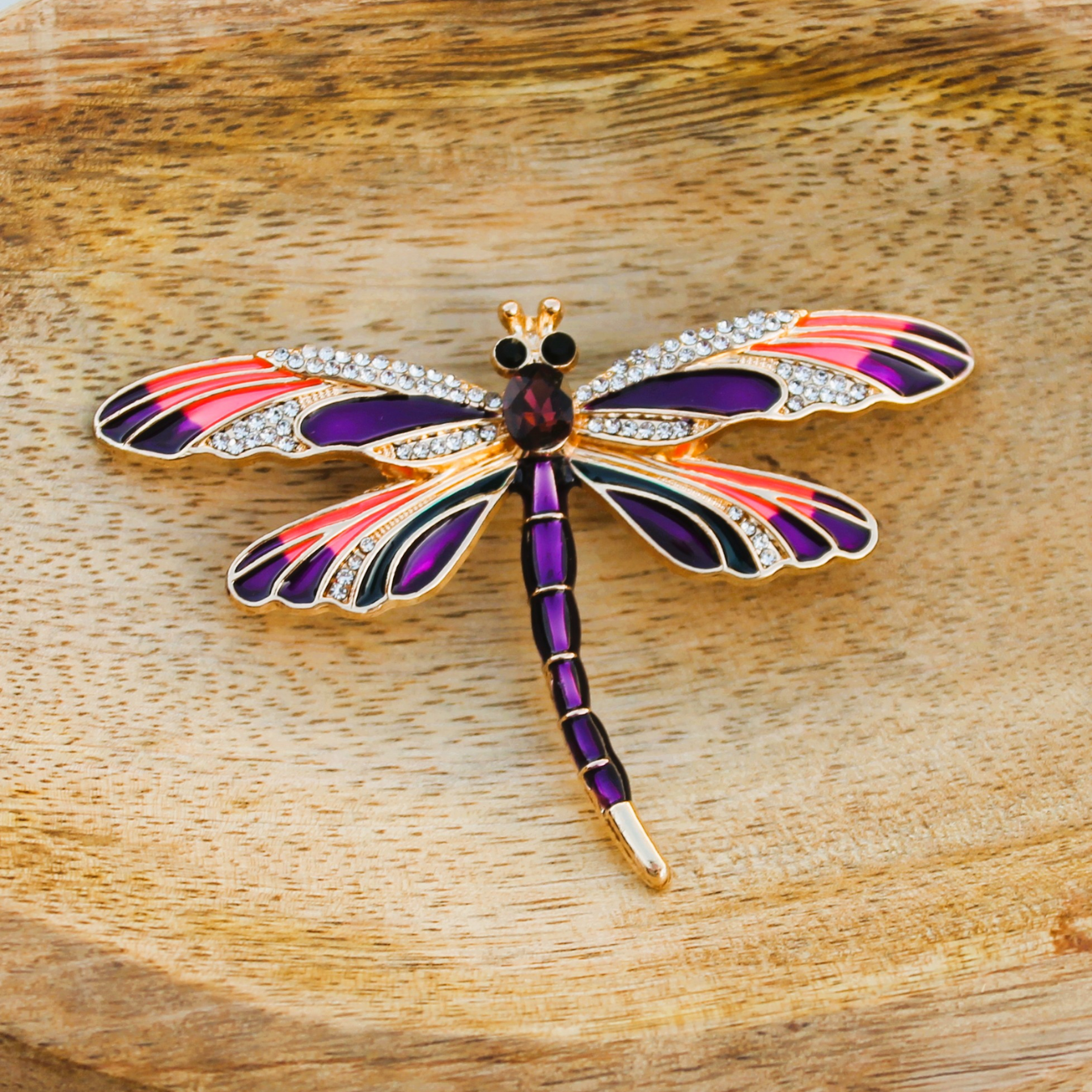 Spirituellement, la libellule est un symbole fort de transformation, de changement et d’adaptabilité, en raison de son cycle de vie : dans l’eau et dans le ciel, vie aquatique vers le ciel ; et pour sa capacité à changer de couleur. Elle est aussi associée à la légèreté et à la joie, et à l’exploration des émotions. On l’aime aussi pour sa capacité à voir la vérité au-delà des illusions. Elle peut représenter la sagesse, la guérison, la créativité et un lien élémental terre-eau-ciel et monde spirituel. Cette broche adorable se décline en 4 couleurs : elle chatoie au soleil.  Son corps est fait d’une pierre synthétique colorée, ses ailes et son corps d’émail coloré rehaussé se zircons et de métal doré. On l’offre ou on se l’offre quand de beaux et bons changements doivent s’accomplir. Ses dimensions sont parfaites, ni trop grande ni trop petite : elle rehausse subliment une tenue en toute occasion.