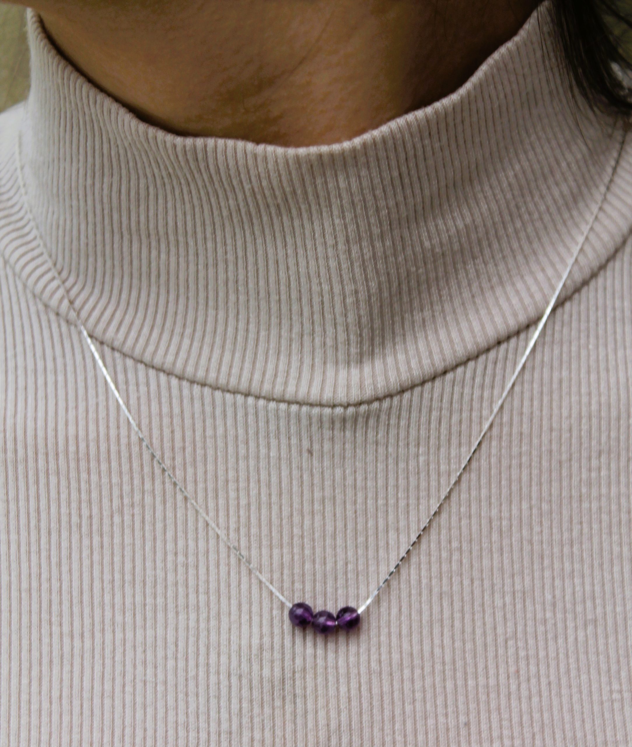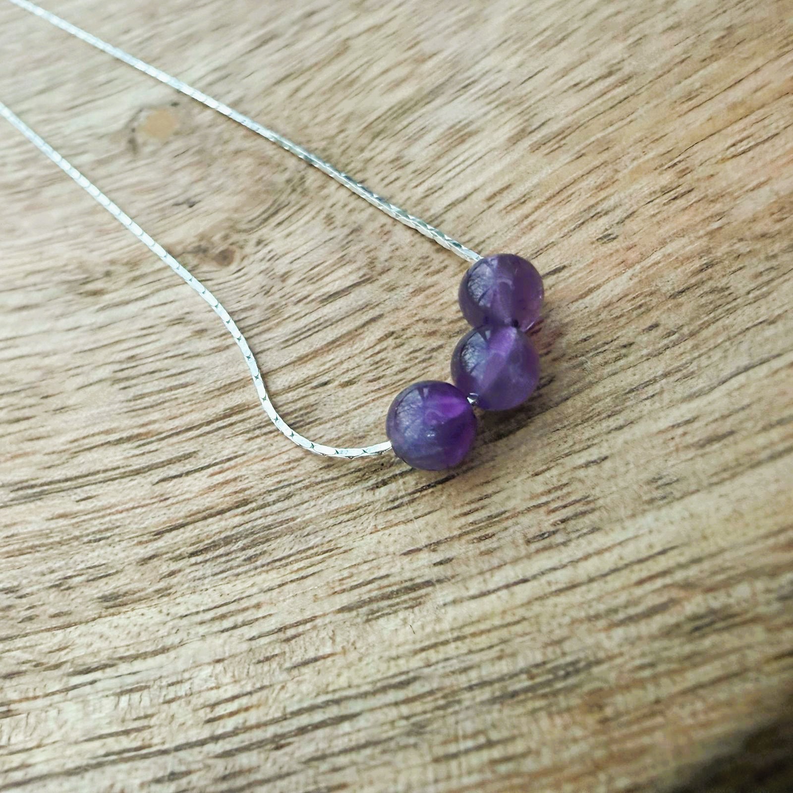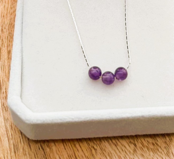 Chaîne en argent & perles d’améthyste