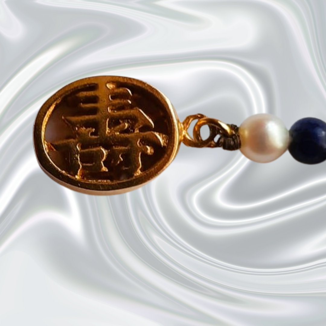 Voici un très joli collier, précieux, une pièce unique faite de vraies perles fines de culture originaires de Macau et de perles de lapis lazzuli. Livré dans un écrin de velours. Il symbolise la protection puissante du monde invisible. Cadeau idéal pour la saint Valentin, ou la fête des mères ou une occasion unique, ou une fête de Noël.