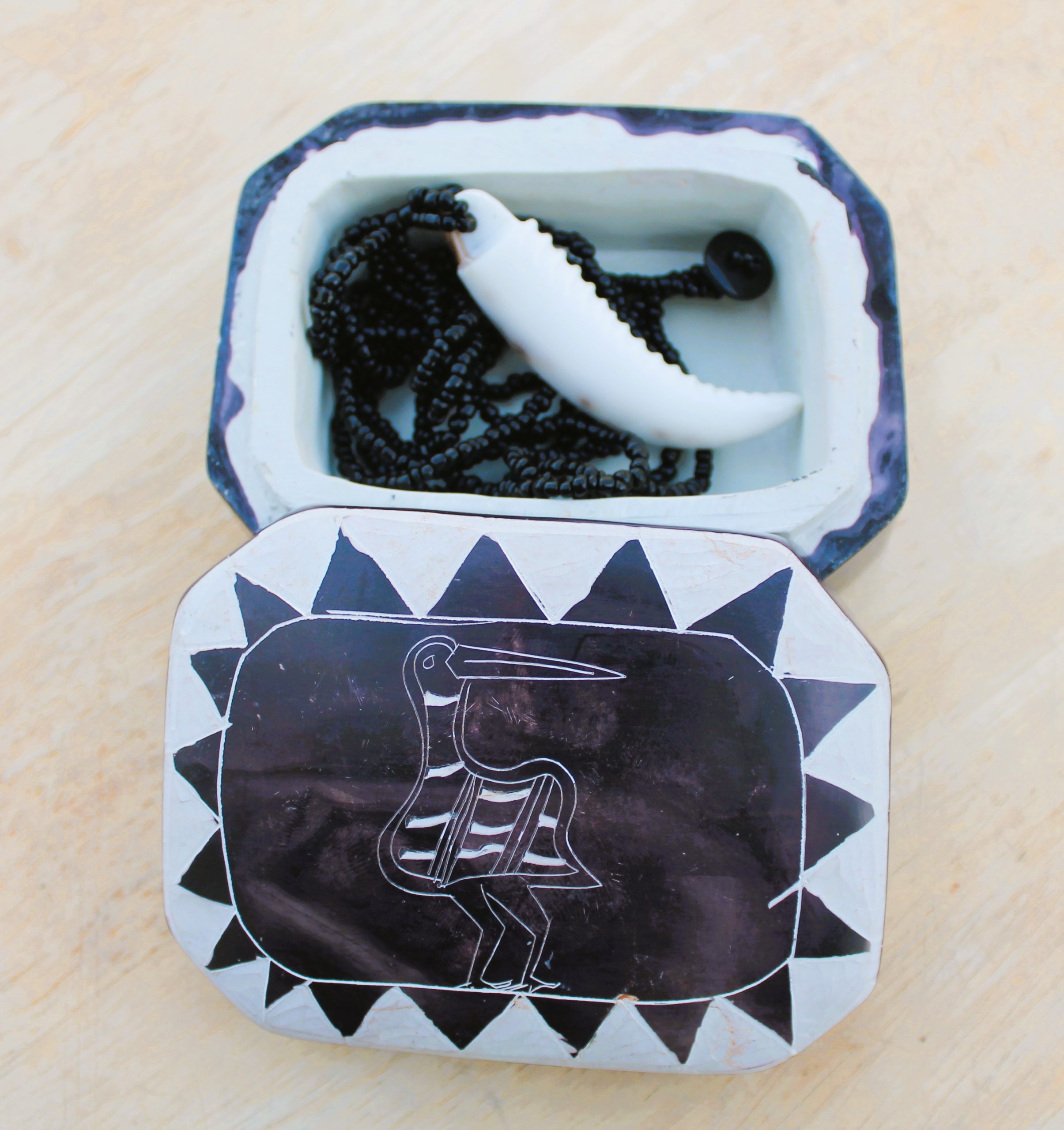 Une idée de synergie ? Offrez ce bijou dans une boîte sculptée en pierre, aux motifs ethniques et animalier.