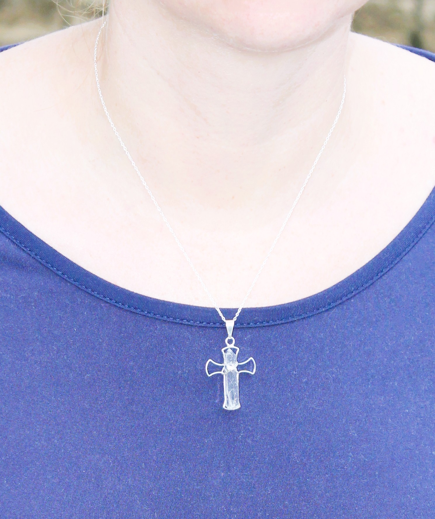 - Hauteur de la croix : 4 cm (suspensoir inclus)