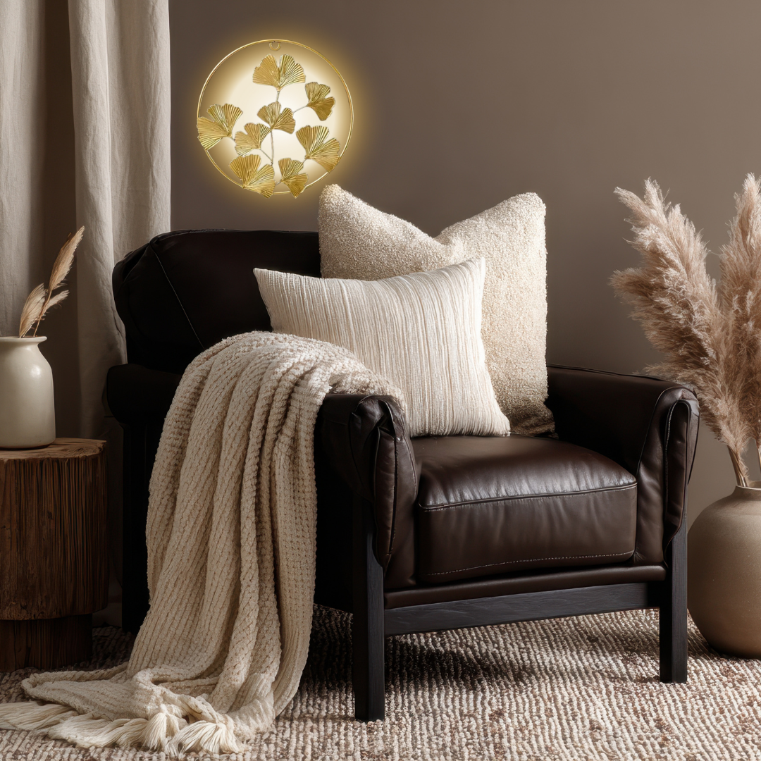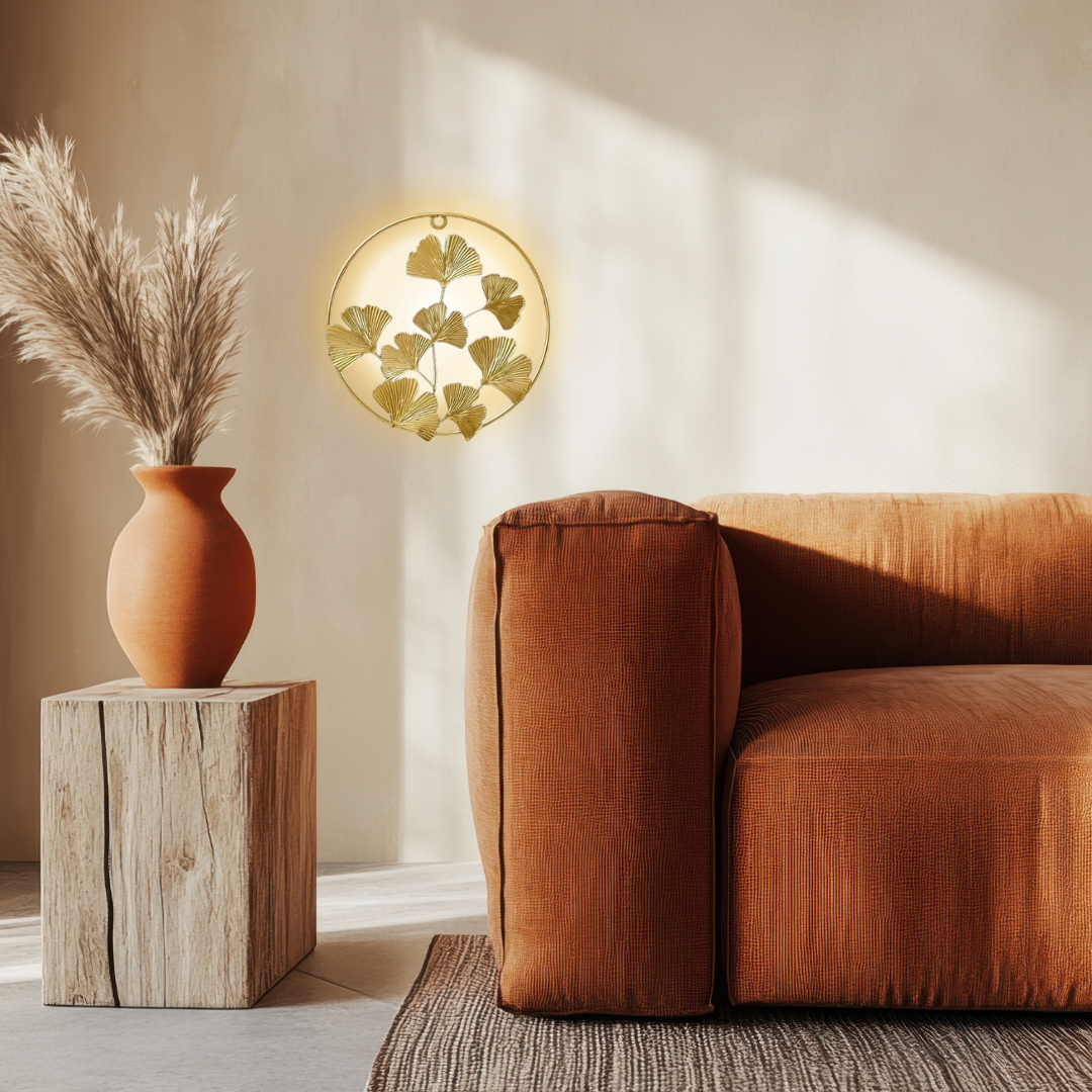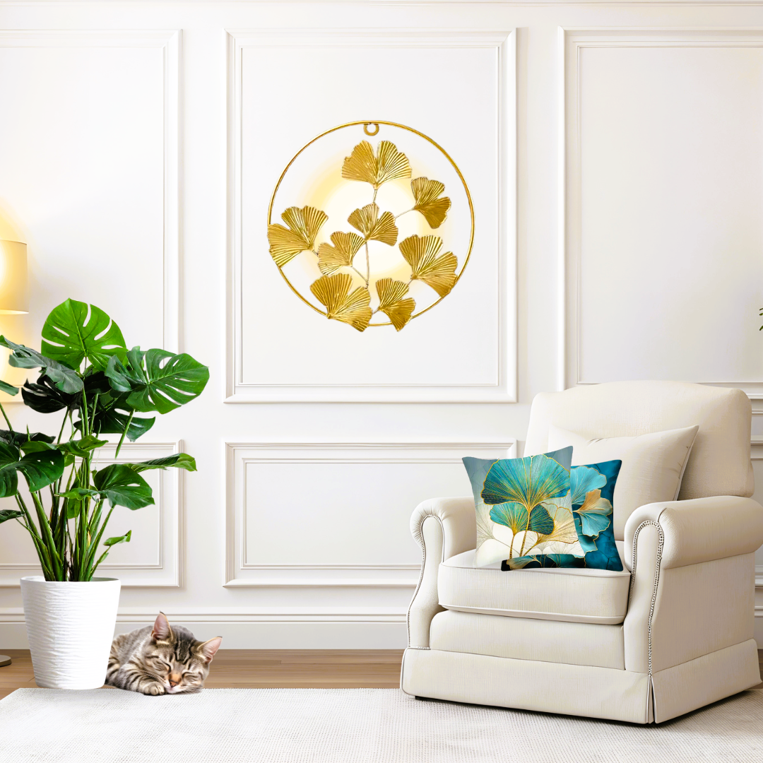 Type de motifs: grandes feuilles de gingko biloba en métal doré