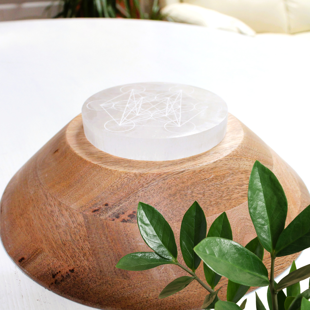 Façon : disque gravé d’une forme géométrique complexe appelée « cube de Métatron »