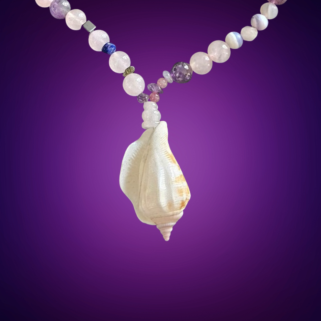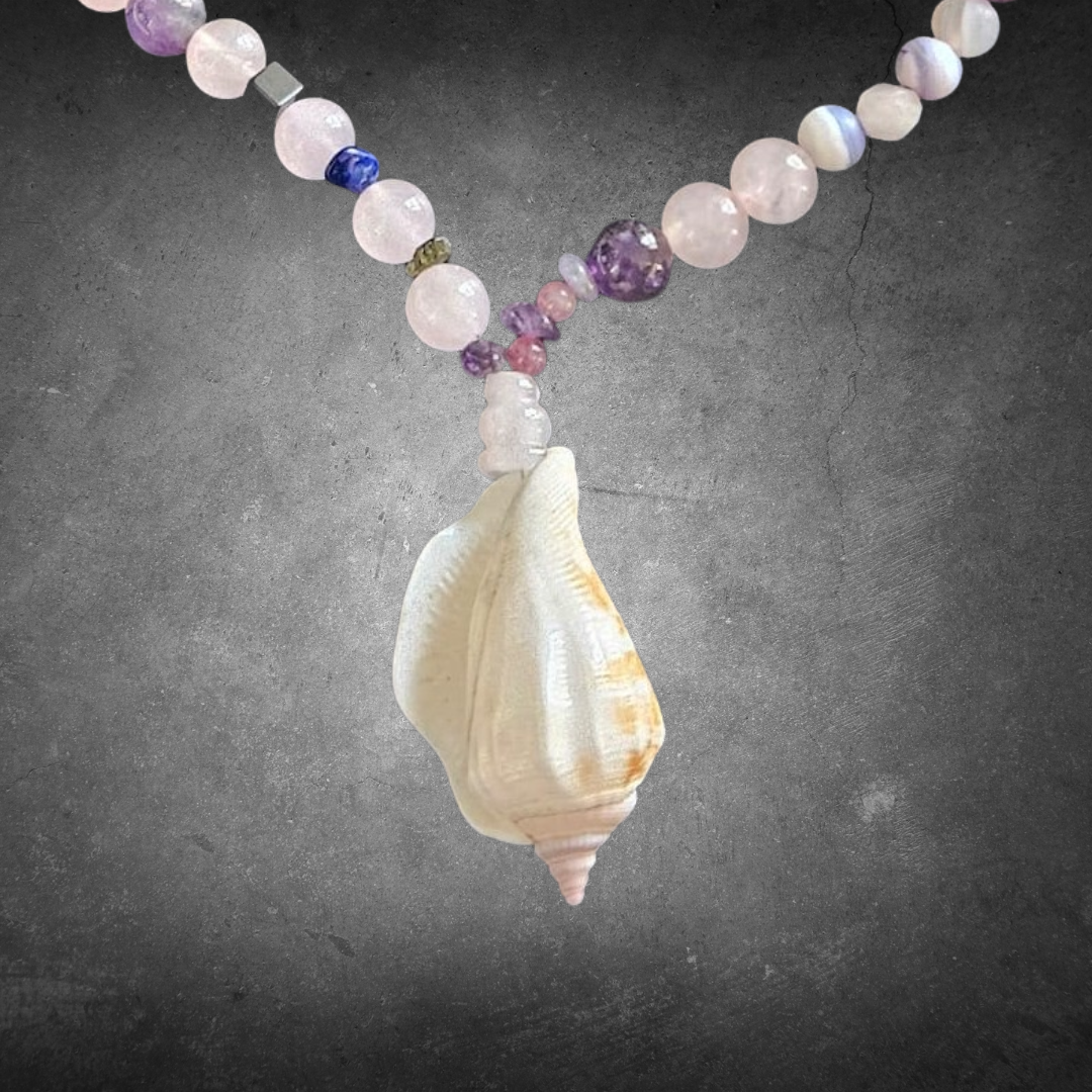 Collier unique, pour une personne unique, en harmonie avec la nature, rehaussé d’un magnifique coquillage
