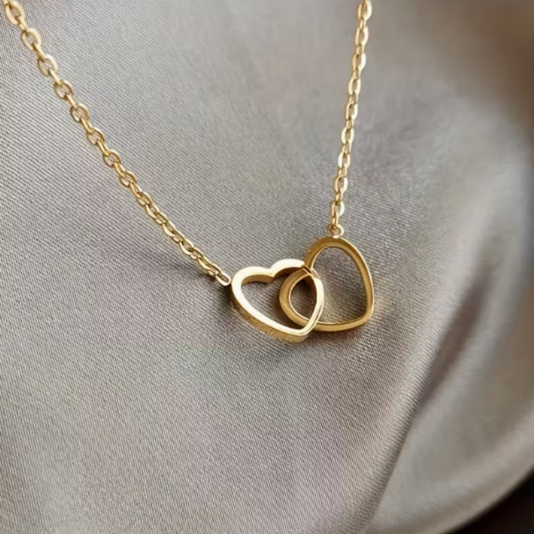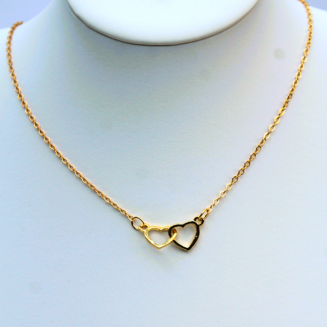 Pendentif en laiton doré représentant deux cœurs entrelacés